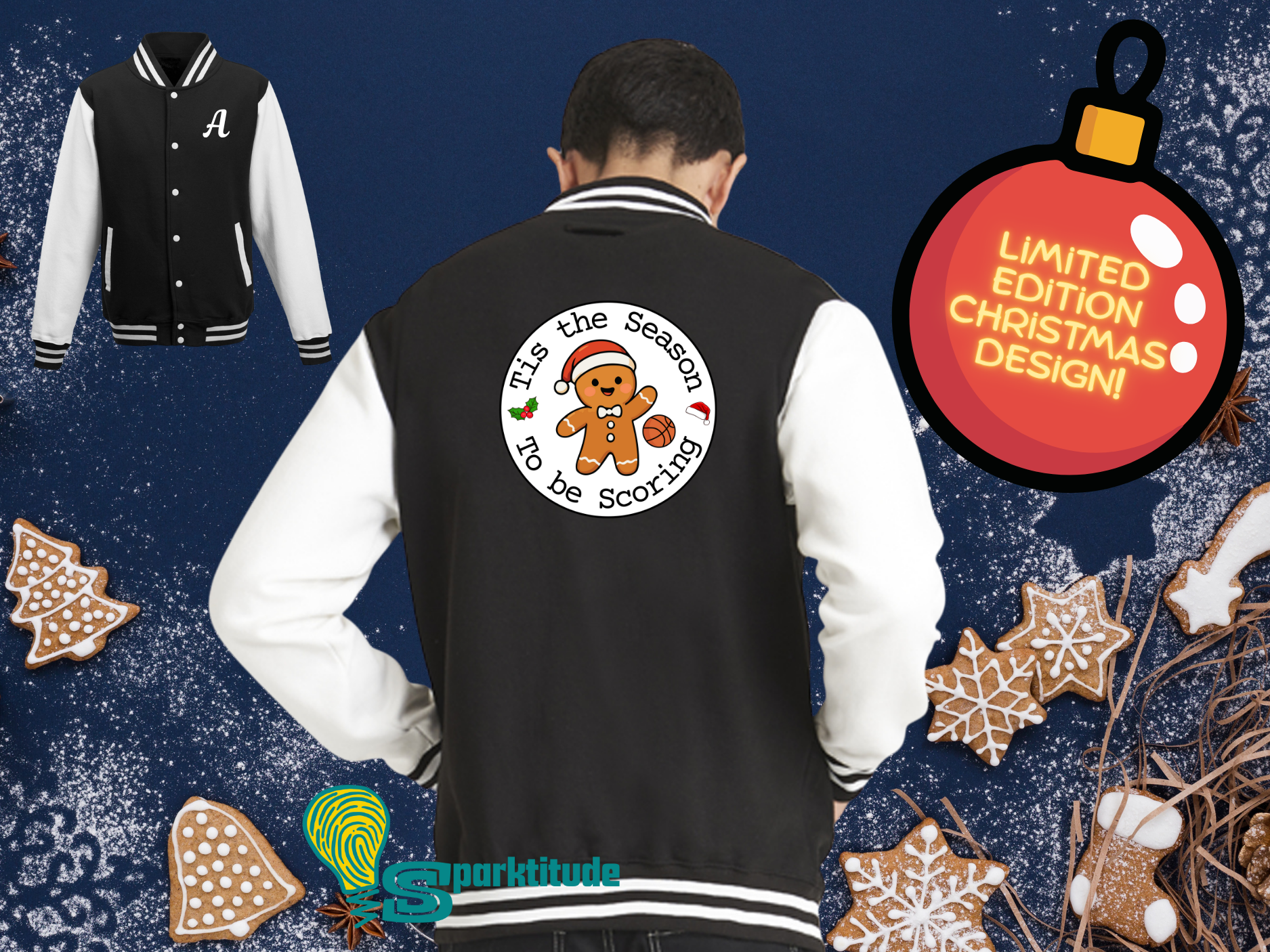 Are you as excited about Christmas as we are? It’s a great way to show off your love of your favourite sport in a festive way! We’ve been busy designing some super cute Christmassy designs to celebrate your favourite sport! Our gingerbread basketballer logo varsity-style jacket is part of our Gingerbread Logo range, featuring the sportiest gingerbread dude in town. Whether it’s for you or is a gift for someone special, this jacket (or one of the other great items also available in this design) is perfect for anyone who loves basketball!