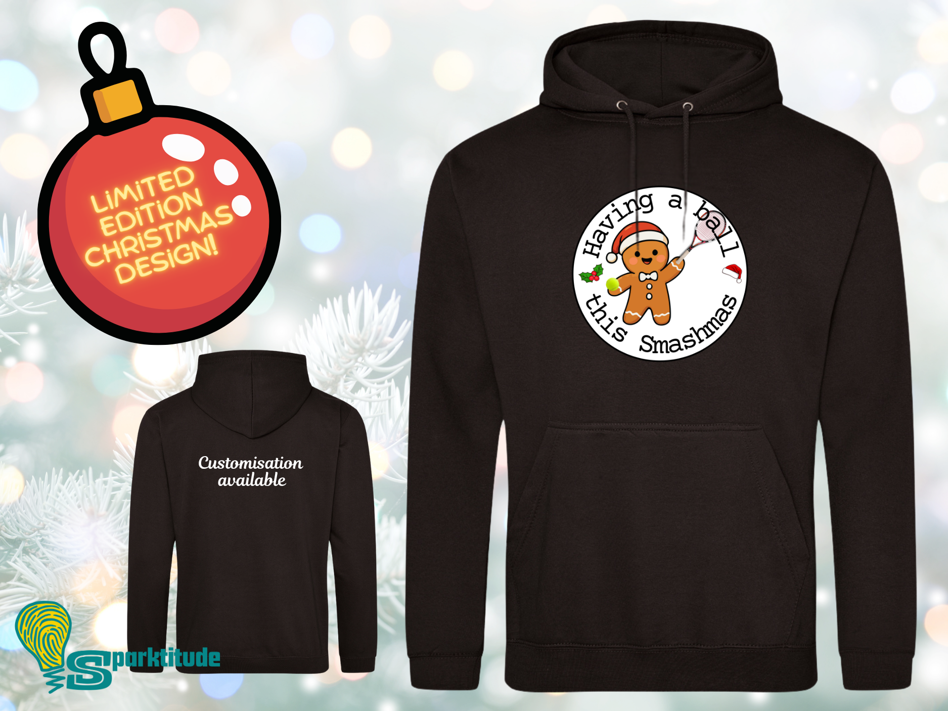 Snuggly Christmas hoodie, check. Make it cute and feature a gingerbread man playing tennis, check. As part of our exclusive 2025 Christmas collection, this gingerbread tennis player design is a sure to make your child embrace that happy Christmas feeling. This hoodie(or one of the other great items also available in this design) is perfect for anyone who loves tennis!
