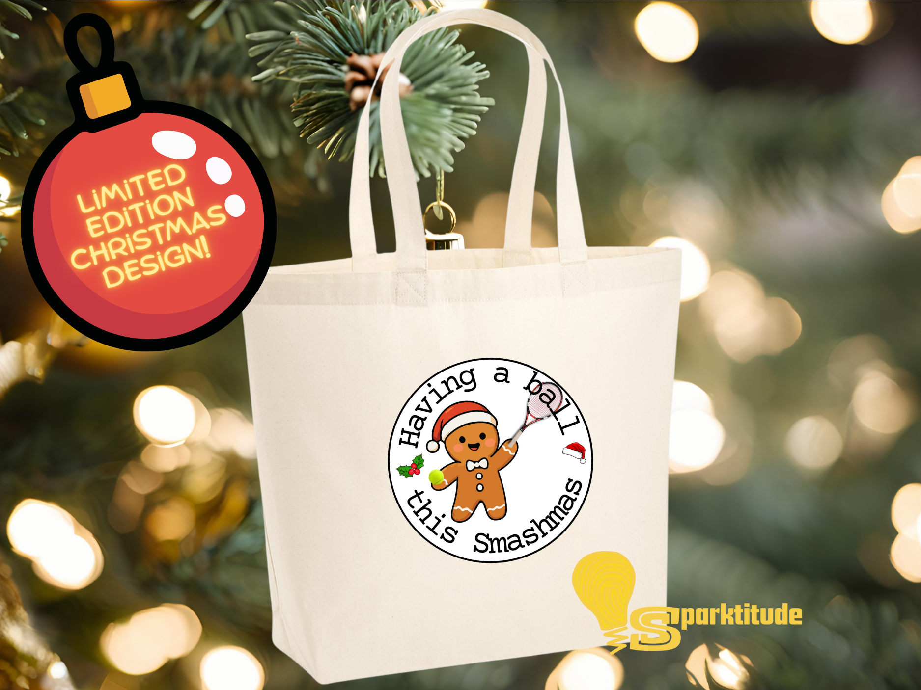 With Christmas right around the corner (yippee!) and lots to do before the big day, we’re getting really excited about all the goodies in store! We’ve been busy beavering away in our (not-so) sunny Surrey workshop channeling the elves to bring you some cute, exclusive designs to show off your favourite sport – tennis, obviously! – to the world in a stylish, yet practical way. This smashing design features a super cute gingerbread dude showing off his tennis skills.