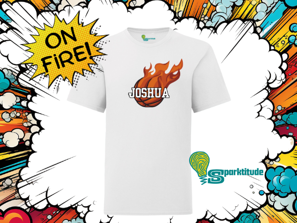 Do you love basketball? We do! Featuring a unique flaming basketball design with your name on it, these lovely, soft, 100% ringspun combed cotton t-shirts are comfortable and easy to look after as well!